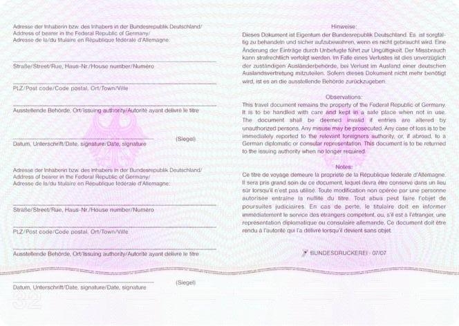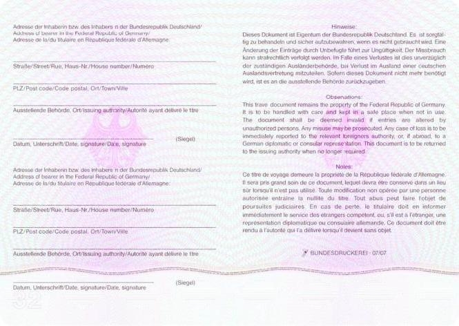 | EU-Rückkehrausweis | Rückseite |