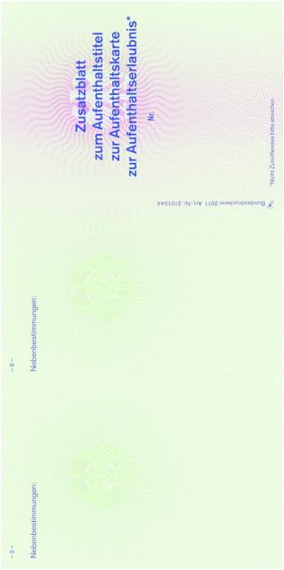 | 10. | für die Ausstellung eines Aufenthaltstitels auf besonderem Blatt | 18 Euro, |