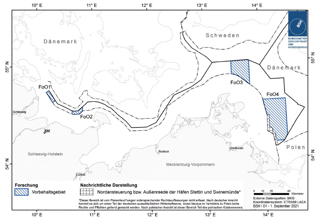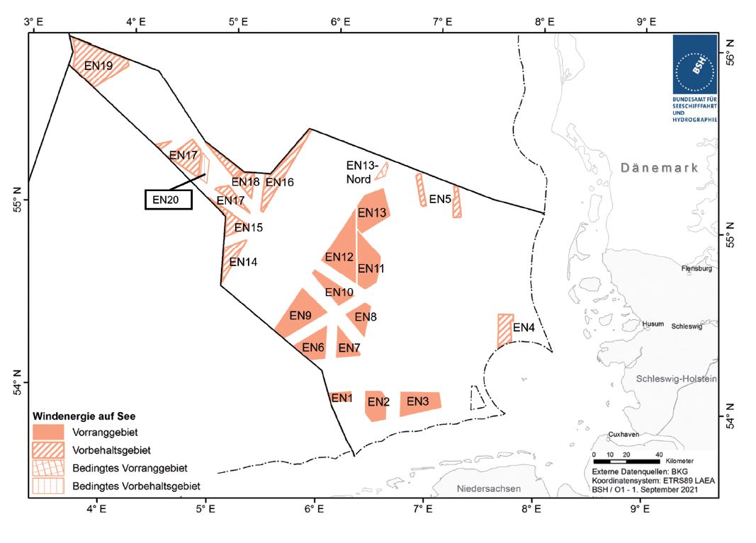 Zudem wurden ein bedingtes Vorranggebiet EN13-Nord in der Nordsee ab 01.01.2030 und ein bedingtes Vorbehaltsgebiet EO2-West in der Ostsee ab 01.01.2025 festgelegt. Auflösende Bedingung ist (d. h., die Gebiete werden nicht zu Vorrang- bzw. Vorbehaltsgebieten Windenergie), dass das für Schifffahrt zuständige Bundesministerium nachweist, dass diese Gebiete aus zwingenden Gründen der Sicherheit und Leichtigkeit des Schiffsverkehrs auch weiterhin für die Schifffahrt benötigt werden. Das Gebiet EN20 wurde als Vorbehaltsgebiet ab dem 01.01.2027 festgelegt, es sei denn, das für Fischereiforschung zuständige Bundesministerium weist nach, dass eine Freihaltung des Gebietes von Bebauung durch Windenergieanlagen für die Fischereiforschung unerlässlich ist. Diese Festlegungen stellen sicher, dass ausreichend Zeit besteht, die Notwendigkeit der Gebiete für Schifffahrt bzw. Fischereiforschung zu prüfen. Zur Wahrung der Interessen der Fischereiforschung soll in den Gebieten EO2-West und EN20, die sich mit den Vorbehaltsgebieten FoN3 und FoO3 überlagern, die Fischereiforschung in Art und Umfang wie bisher möglich bleiben.