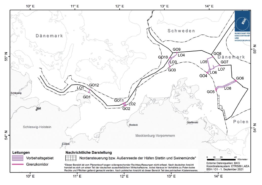 Abbildung 6:Festlegungen für Leitungen und Grenzkorridore in der Ostsee26