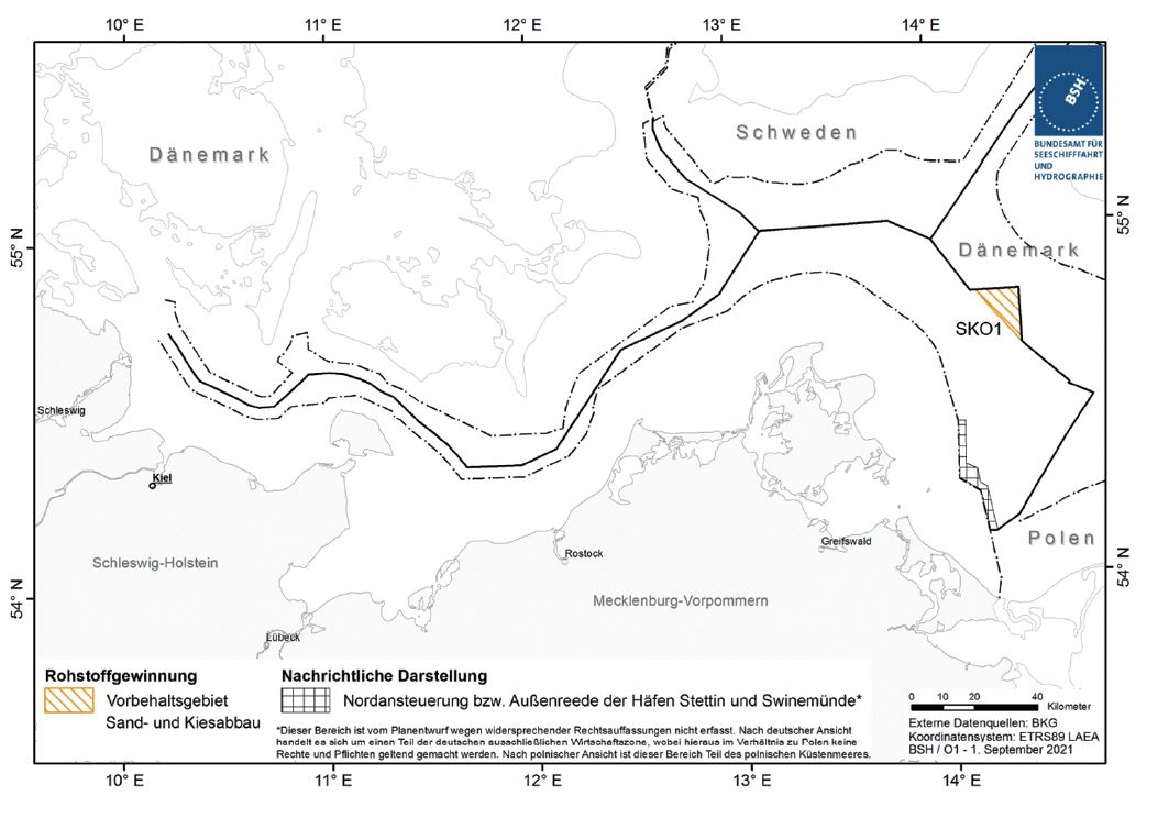 Der Rohstoffabbau in OAMIII/SKN1 zeigt auf Grundlage der Monitoringdaten keine erhebliche Beeinträchtigung der Ursprungssubstrate und der gesetzlich geschützten Biotope. Die Ausweisung des Vorbehaltsgebiets SKO1 findet unter Berücksichtigung der Erfahrungen aus der Nordsee und angepasst an die lokalen, sehr heterogenen Sedimentverhältnisse im Gebiet Adlergrund Nordost statt. Es wurden auch Erkenntnisse aus einer Umweltverträglichkeitsprüfung für Sandabbau auf der Rönnebank im benachbarten dänischen Meeresgebiet berücksichtigt.