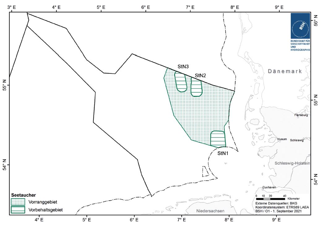 Die Festlegung zum Seetaucher wurde basierend auf den Anmerkungen zum 1. Planentwurf großflächig vom Vorbehalts- zum Vorranggebiet aufgewertet. Der kombinierte Ansatz von Vorrang- und Vorbehaltsgebieten Seetaucher gewährleistet den vorrangigen Schutz des Seetauchers in weiten Teilen des Gebietes, sichert die besondere Bedeutung des Hauptkonzentrationsgebiets für den Seetaucher und trägt gleichzeitig der nachhaltigen Nutzung der Vorbehaltsgebiete EN4 und EN5 Rechnung.