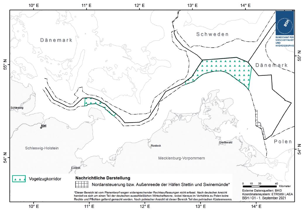Abbildung 17:Vogelzugkorridore „Fehmarn-Lolland“ und „Rügen-Schonen“ in der Ostsee32