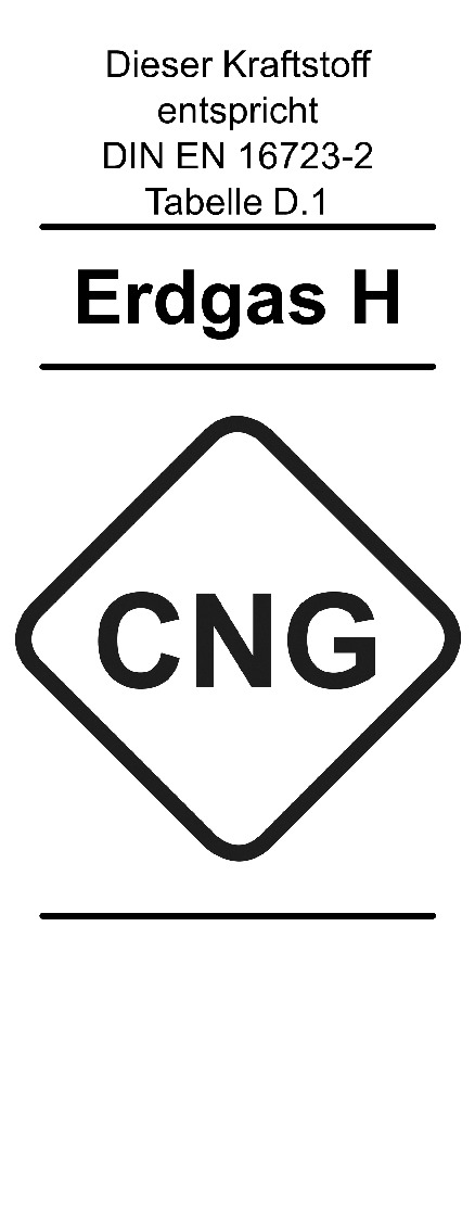 Zehnte Verordnung zur Durchführung des Bundes-Immissionsschutzgesetzes*)**) (Verordnung über die Beschaffenheit und die Auszeichnung der Qualitäten von Kraft- und Brennstoffen - 10. BImSchV) Anlage 11(zu § 13 Absatz 1 Satz 1 Nummer 9 Buchstabe a Doppelbuchstabe aa) Zeichen Erdgas und Biogas als Kraftstoff – CNG Gruppe H