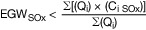 EGWSOx: berechneter Emissionsgrenzwert für Schwefeldioxid und Schwefeltrioxid, angegeben als Schwefeldioxid, in mg/m³ für den Tagesmittelwert,
