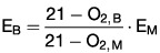 Die gemessenen Emissionen sind nach folgender Gleichung auf den Bezugssauerstoffgehalt umzurechnen: