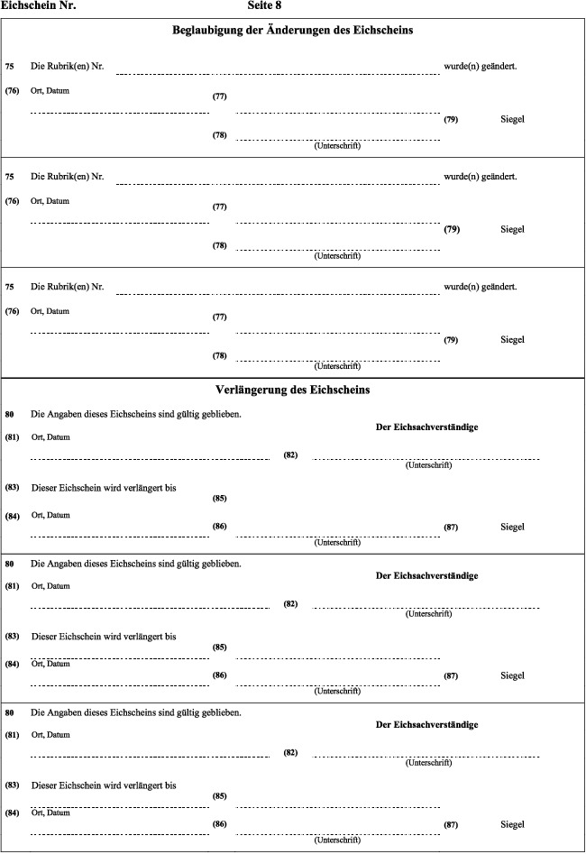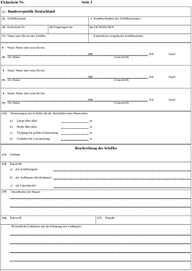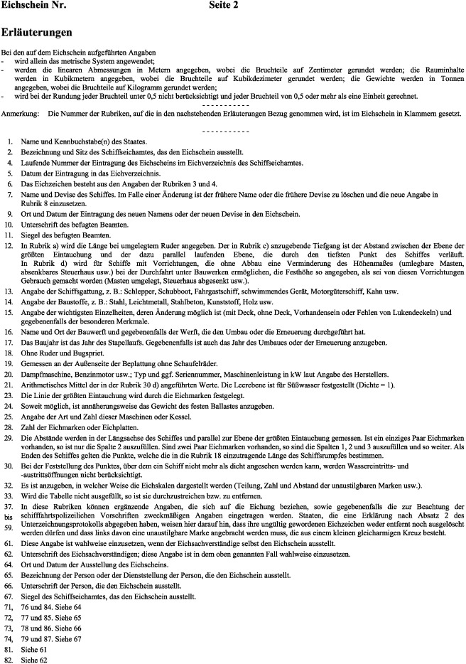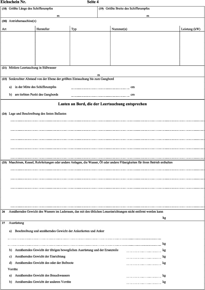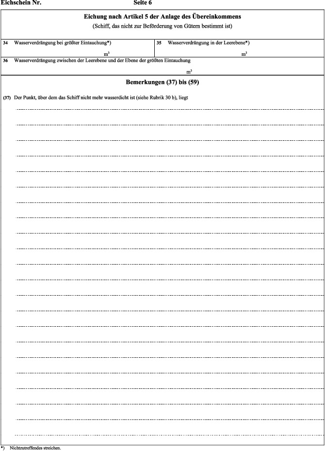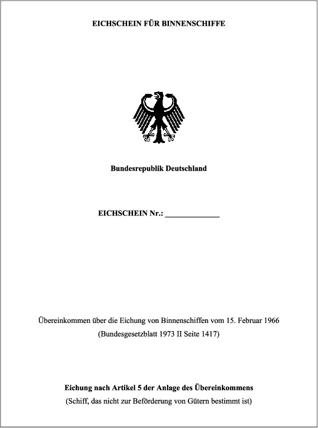 Muster des Eichscheins für Binnenschiffe (Nichtgüterbeförderer)