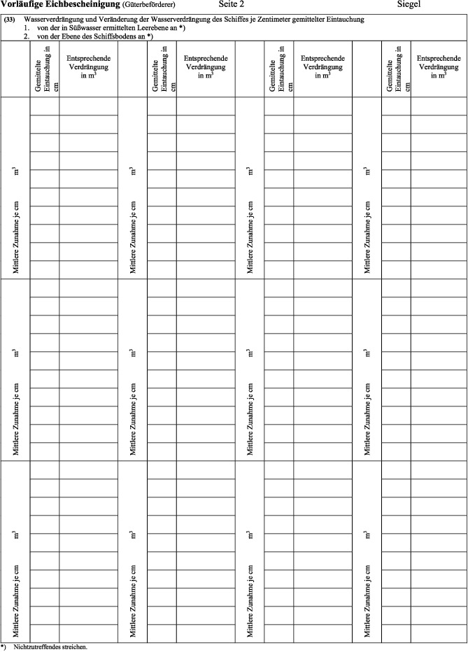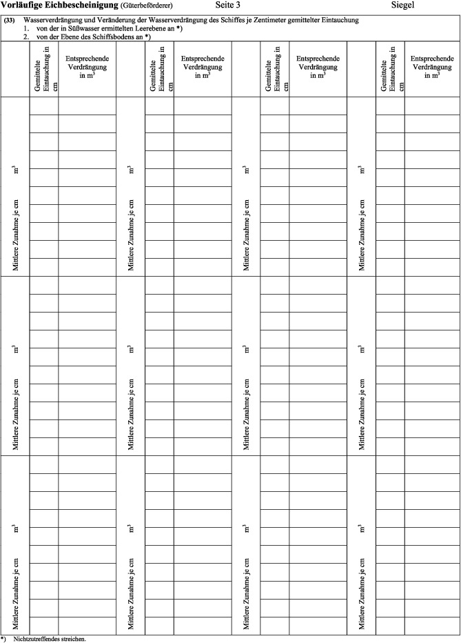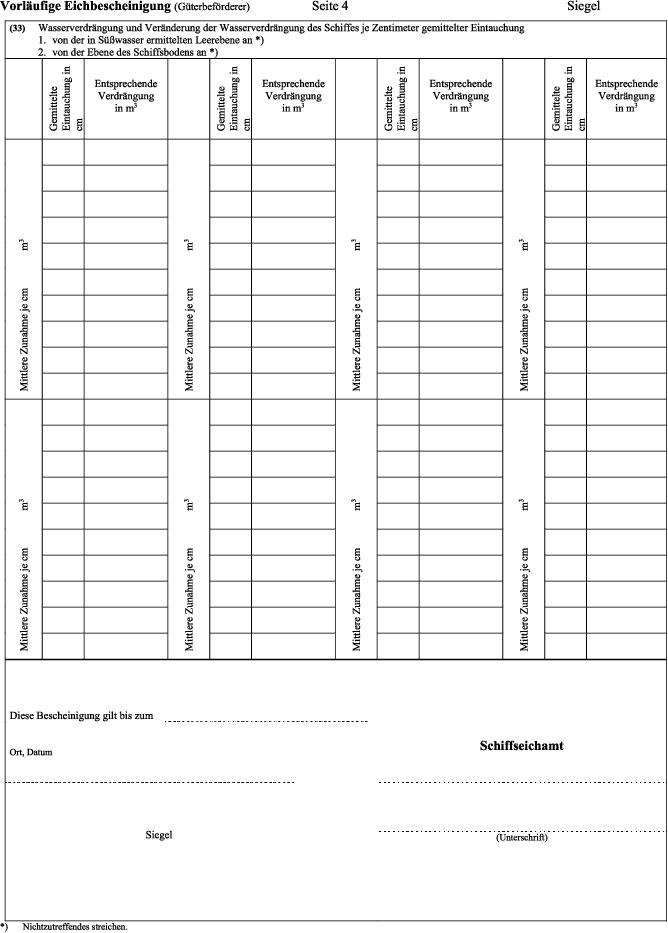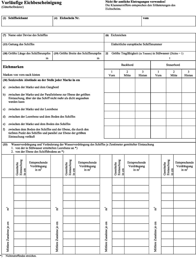 Muster der Vorläufigen Eichbescheinigung (Güterbeförderer)