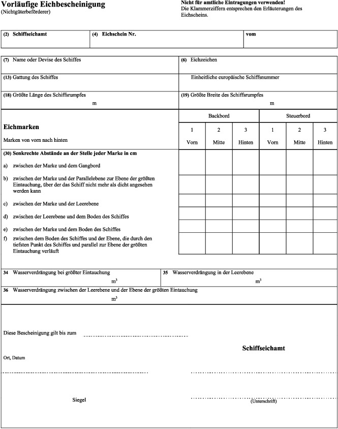 Muster der Vorläufigen Eichbescheinigung (Nichtgüterbeförderer)
