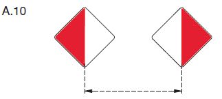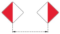 | Toppzeichen: | rote quadratische Tafel mit weißen waagerechten Streifen am oberen und unteren Rand | ||||