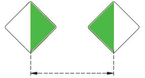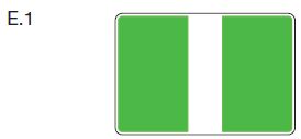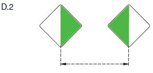 | Toppzeichen: | auf der Spitze stehende quadratische Tafel, obere Hälfte grün, untere Hälfte weiß | ||||