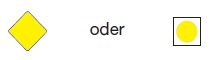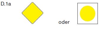 | Toppzeichen: | gelbe quadratische Tafel mit einem senkrechten schwarzen Mittelstreifen | ||||