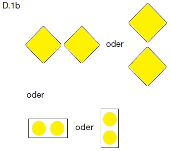 | Toppzeichen: | gelbe auf der Spitze stehende quadratische Tafel mit einem senkrechten schwarzen Mittelstreifen | ||||