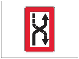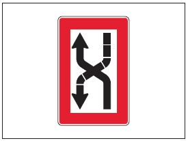| Ein Einzelgefahrzeichen wird errichtet oder ausgelegt über einer Einzelgefahr. Die Gefahrenstelle kann an allen Seiten passiert werden. | |||||