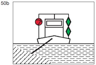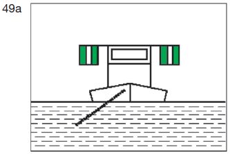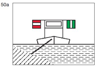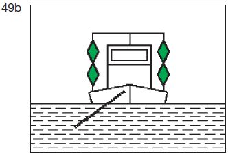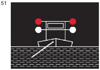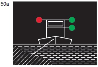 | ein rotes gewöhnliches Licht oder ein rotes helles Licht in gleicher Höhe und von gleicher Stärke wie das nach Buchstabe a Doppelbuchstabe aa gezeigte oberste grüne Licht; | ![]() |