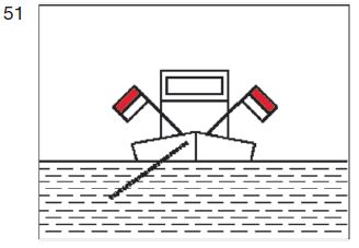 | ein rotes gewöhnliches Licht und ein weißes gewöhnliches Licht oder ein rotes helles und ein weißes helles Licht, das rote Licht 1,00 m über dem weißen; | ![]() |