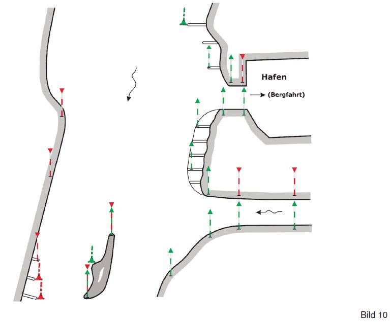 VI. Bezeichnung der Lage der Fahrrinne zum Ufer sowie des Übergangs der Fahrrinne von einem zum anderen Ufer | |||||