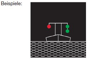 | Ein Funkelfeuer wird mit 60 Lichterscheinungen/Minute und ein schnelles Funkelfeuer mit 100 bis 120 Lichterscheinungen/ Minute ausgesendet. Ein Blink wird als Lichterscheinung von mehr als zwei Sekunden Dauer sichtbar. | |||