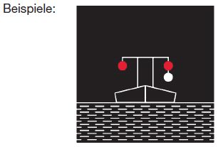 | Toppzeichen: | roter Kegel - Spitze unten - (in der Regel als Radarreflektor) | |||
