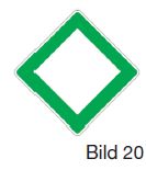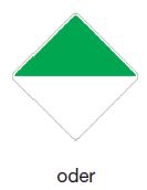 | Toppzeichen: | auf der Spitze stehende quadratische Tafel, obere Hälfte grün, untere Hälfte weiß | ||||
