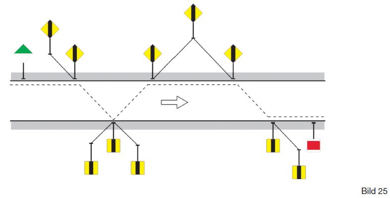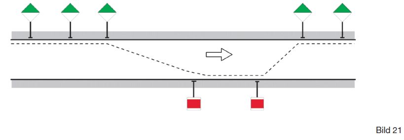 | 1. | Vorbeifahrt ohne Herabsetzung der Geschwindigkeit auf der freien Seite zugelassen | ||||
