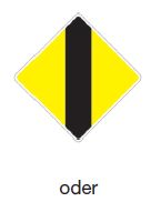 | Toppzeichen: | gelbe quadratische Tafel mit einem senkrechten schwarzen Mittelstreifen | ||||