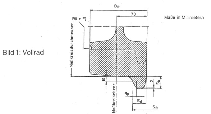 | Bezeichnung | Meßkreisdurchmesser der Räder | Mindestmaß | Höchstmaß | ||