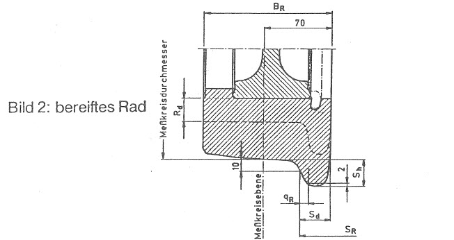 | Dicke des Radreifens in Meßkreisebene (Rd) | ≥ 330 | 25 | 355) | - | |