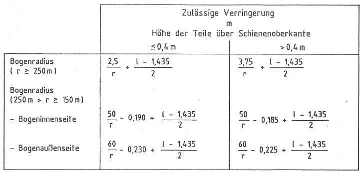 | bei nicht festgelegtem Gleis | bei festgelegtem Gleis | bei festgelegtem Gleis und einem Überhöhungs- oder Querhöhenfehler ≤ 5 mm | |