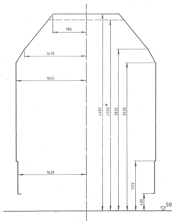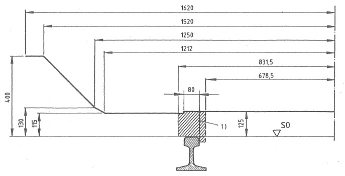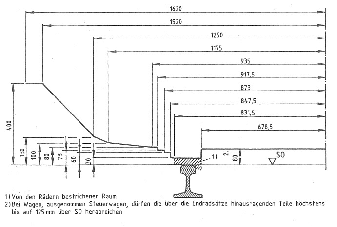 | * Zulässige Höhe für Fahrzeugteile, aus denen Dampf ausströmen kann | | Unterer Teil der Bezugslinie Siehe Bilder 2 und 3 |