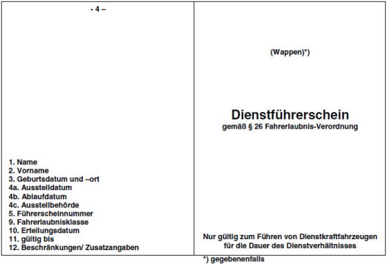 IV. Muster für den Führerschein zur Fahrgastbeförderung (Muster 4)