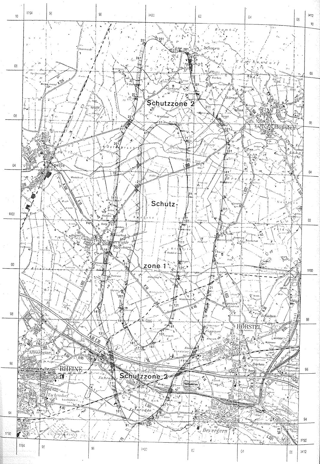 Verordnung über die Festsetzung des Lärmschutzbereichs für den militärischen Flugplatz Hopsten Anlage 2(zu § 4 Abs. 1 der Verordnung über die Festsetzung des Lärmschutzbereichs für den militärischen Flugplatz Hopsten in der Fassung der Zweiten Änderungsverordnung vom 12. Juli 1991)