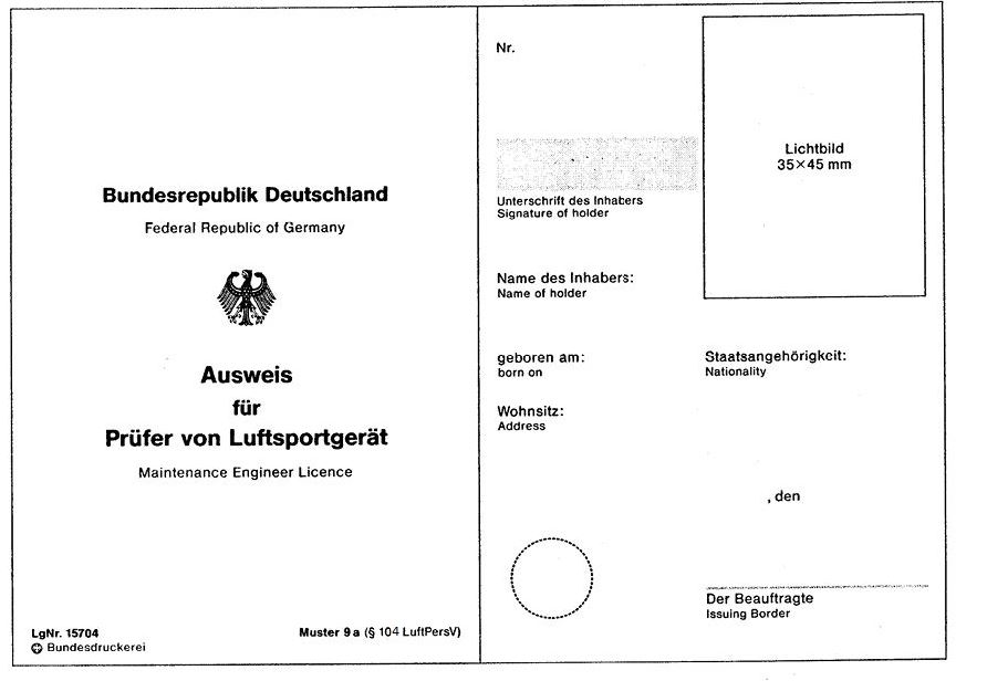 Ausweis für Prüfer von Luftsportgerät