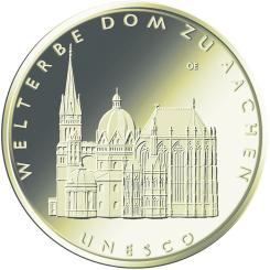 Gemäß den §§ 2, 4 und 5 des Münzgesetzes vom 16. Dezember 1999 (BGBl. I S. 2402) hat die Bundesregierung am 5. Oktober 2011 beschlossen, in Würdigung des UNESCO Welterbes Dom zu Aachen eine Gedenkmünze zu 100 Euro aus Gold prägen zu lassen.