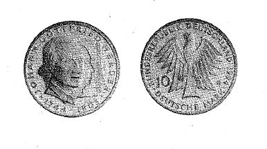 Die Wertseite trägt einen Adler, die Wertzahl "10", das Münzzeichen "G" der Staatlichen Münze Karlsruhe und die Umschrift: