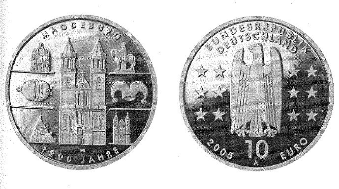 Gemäß den §§ 2, 4 und 5 des Münzgesetzes vom 16. Dezember 1999 (BGBl. I S. 2402) hat die Bundesregierung beschlossen, zur Würdigung des 1200-jährigen Jubiläums der Stadt Magdeburg eine deutsche Euro-Gedenkmünze im Nennwert von 10 Euro prägen zu lassen.