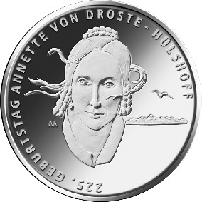 Bekanntmachung über die Ausprägung von deutschen Euro-Gedenkmünzen im Nennwert von 20 Euro (Gedenkmünze „225. Geburtstag Annette von Droste-Hülshoff“)