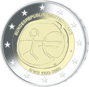 Gemäß den §§ 2, 4 und 5 des Münzgesetzes vom 16. Dezember 1999 (BGBl. I S. 2402) hat die Bundesregierung beschlossen, eine 2-Euro-Gedenkmünze „10 Jahre Wirtschafts- und Währungsunion“ prägen zu lassen.