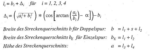 | Breite des Streckenquerschnitts b | 10,10 m | 10,50 m | 11,40 m |