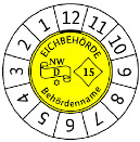 Beträgt die Eichfrist weniger als zwölf Monate, besteht die Kennzeichnung aus einer runden Klebemarke mit den Monatszahlen 1 bis 12 am Rand sowie dem Eichkennzeichen in der Mitte. Der Kalendermonat der Eichung ist auf der Klebemarke kenntlich zu machen. Die Kennzeichnung kann auch durch Kombination der runden Marke nach Nummer 1.1 mit einem Ringaufkleber erfolgen, der die Monatszahlen 1 bis 12 trägt.