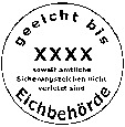 Das Sicherungszeichen der staatlich anerkannten Prüfstelle entspricht dem oberen Teil des Eichkennzeichens nach Nummer 2.1. Es kann als Plombe ausgeführt werden. Bei Ausführung als Klebemarke ist die Hintergrundfarbe orange, entsprechend der nachfolgenden Darstellung.