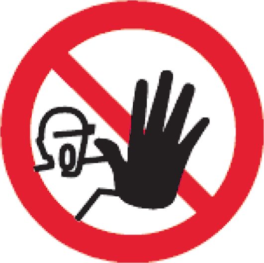 runde weiße Symbole mit rotem Rand, rotem Schrägstrich und einem schwarzen Sinnbild der abwehrenden Hand.