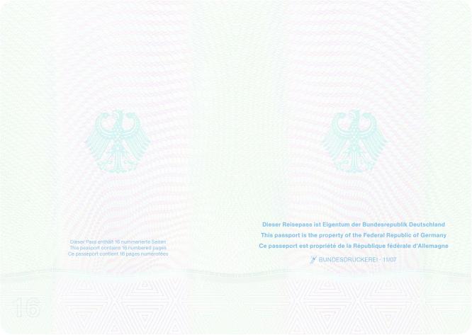 | Reisepass (32 Seiten) | Passbuchinnenseiten 16 und 17 |