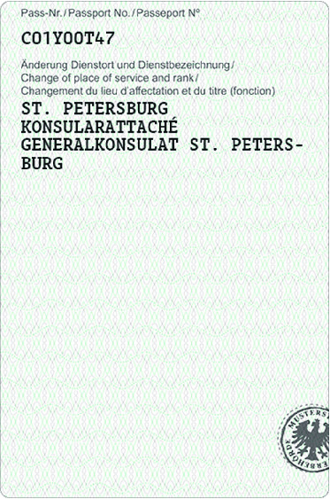 | Vorläufiger Diplomatenpass | Passbuchinnenseiten 2 und 3 |
