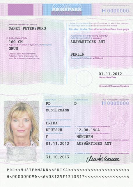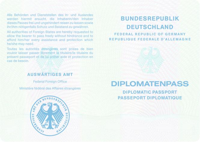 | Vorläufiger Diplomatenpass | Passbuchinnenseiten 2 und 3 |
