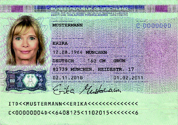 | Schriftgröße1 1 Schriftfont des Ausweisherstellers: (2 mm) UnicodeDoc: 2,4 mm | Schriftgröße 2 Schriftfont des Ausweisherstellers: (1,3 mm) UnicodeDoc: 2 mm | |