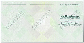 Format:Breite 210 mm, Höhe 105 mm, zweimal faltbar auf DIN A 7, zweiseitig bedruckt.
