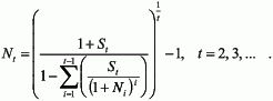 N1. Die weiteren ganzjährigen Null-Kupon-Swapsätze werden wie folgt schrittweise berechnet:
