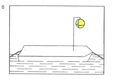 | | einen gelben Ball an einer geeigneten Stelle und so hoch, daß er von allen Seiten sichtbar ist. |  |