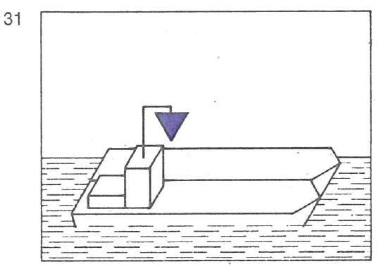 | | Dieses Zeichen muss an einer geeigneten Stelle und so hoch geführt werden, dass sie von allen Seiten sichtbar ist; anstelle des blauen Kegels kann auch je ein blauer Kegel auf dem Vor- und Hinterschiff in einer Höhe von mindestens 3 m über der Ebene der Einsenkungsmarken geführt werden. |